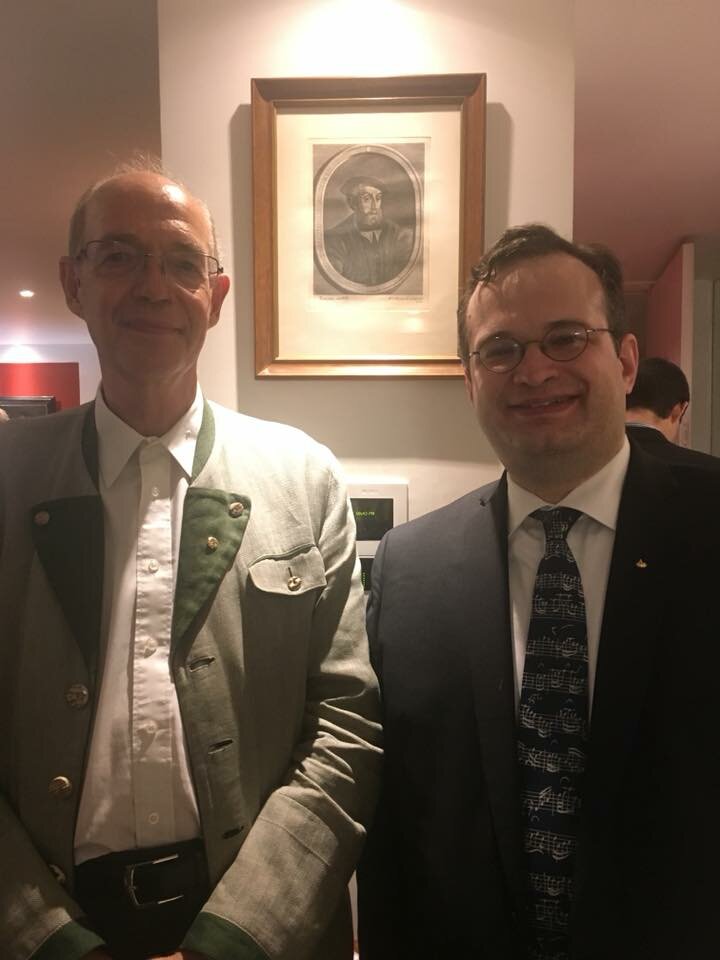 On several occasions I have been privileged to meet members of the world's royal families. In May 1999 I had the opportunity to perform for and talk to HRH Princess Irene of Greece in Bloomington, Indiana, at a gala concert organized in her honor by Professor Emile Naoumoff. More briefly, in September 2000 I greeted TRH Prince Philippe and Princess Mathilde (now King and Queen) of Belgium during their visit to New York City. In January 2002 I met HIRH Archduke Geza of Austria & Hungary when he was the guest speaker at a reception following the requiem mass for King Louis XVI of France. At the October 2006 Eurohistory conference near San Francisco I had the pleasure of meeting and dining with TH Prince Gregory and Princess Carrie of Bourbon-Two Sicilies. In August 2013 in Kabul I met both HH Prince Nadir Naim and HRH Prince Mirwais of Afghanistan when teaching cello at the Afghanistan National Institute of Music. In September 2014 I met Sarah, Duchess of York when she was the guest of honour at the Dallas Symphony opening gala. In October 2015 I met HRH the Duke of Gloucester in Dallas at the investiture weekend of the Order of St. John. In October 2016 I met HI&RH Archduchess Maria Anna of Austria and her husband Prince Peter Galitzine following the mass commemorating her grandfather Emperor Bl Karl in Washington DC. A year later, also in Washington, I met HRH Dom Duarte, Duke of Braganza, head of the Royal House of Portugal. In June 2018 I performed with my brother William for HI&RH Archduke Carlos Felipe (grandson of Bl Karl and great-great-grandnephew of Emperor Maximilian) at his home in Mexico City, with the audience also including his wife and two sons and HRH Prince Alexander, Margrave of Meissen, head of the Royal House of Saxony. We performed for the Archduke and his wife and their guests again in February 2020. I have seen Archduchess Maria Anna again and also met her cousins Archduke Eduard (currently Ambassador of Hungary to the Holy See) and his son Archduke Paul at Bl. Karl events in the Dallas area, most recently in April 2024.